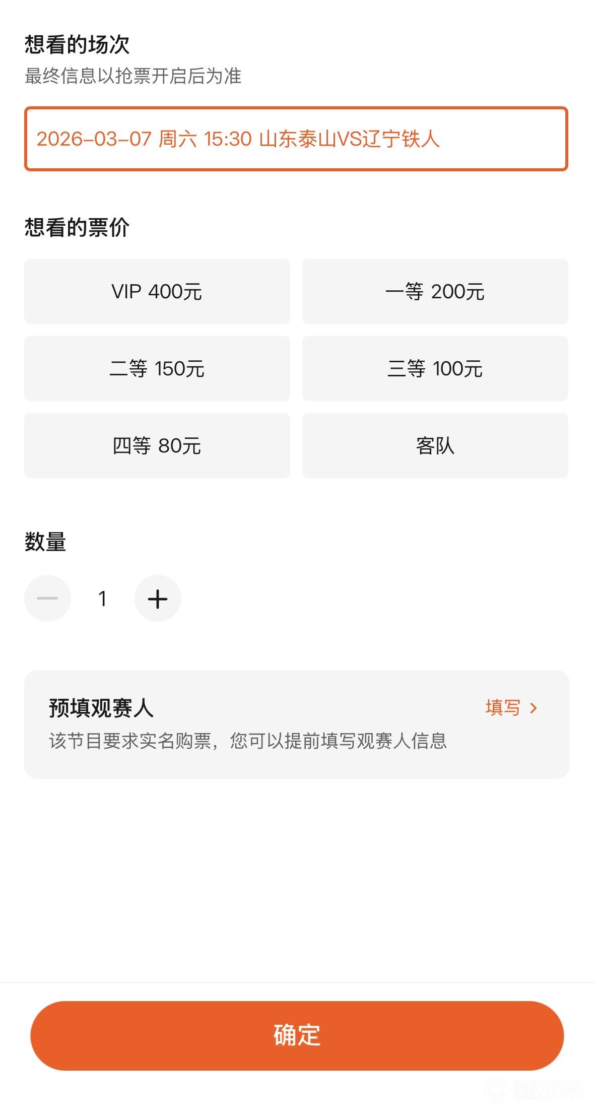 山东泰山与辽宁铁人的售票将于周一上午10:00开售值得一提的是,本次开放客队票出售。